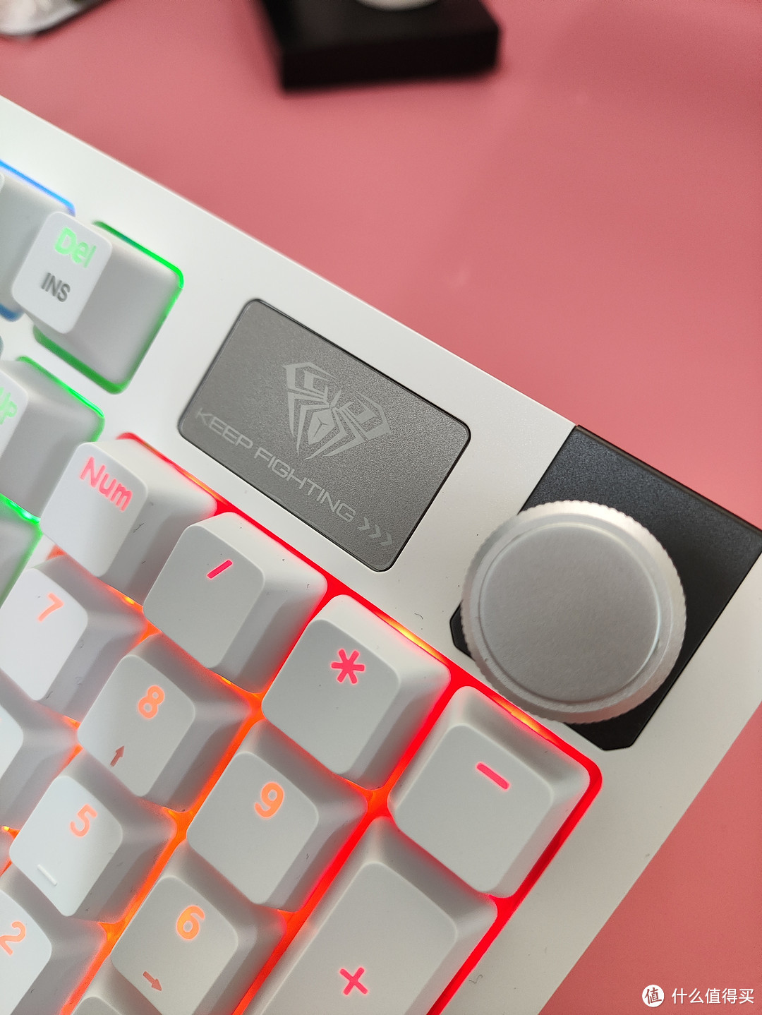 个人感觉如果这个logo的地方不放这个铭牌,可以在多做几个键,比如home键,end键单独拿出来感觉也是可以的。
