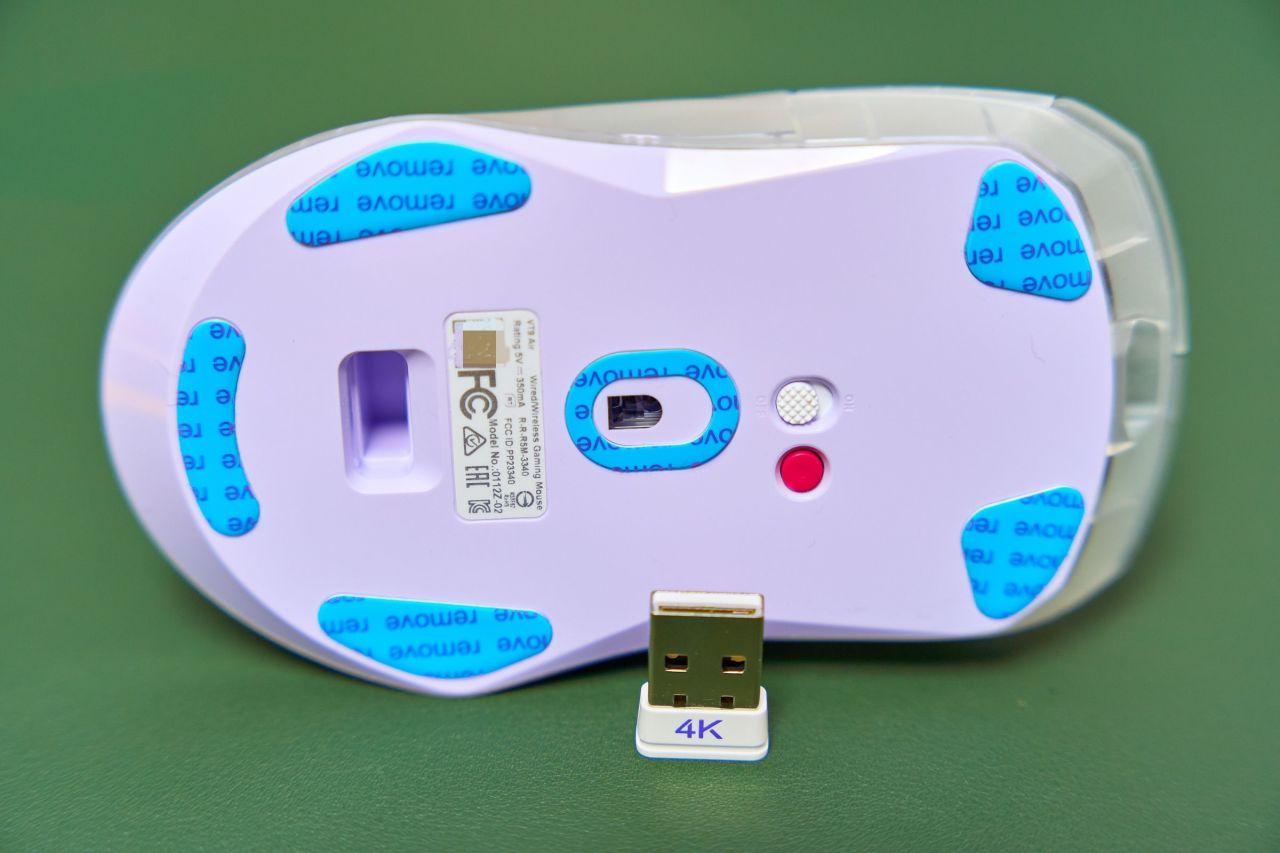 在鼠标正前方是Type-C接口,即充电也能数据传输,所以VT9Air是有线无线双模鼠标。