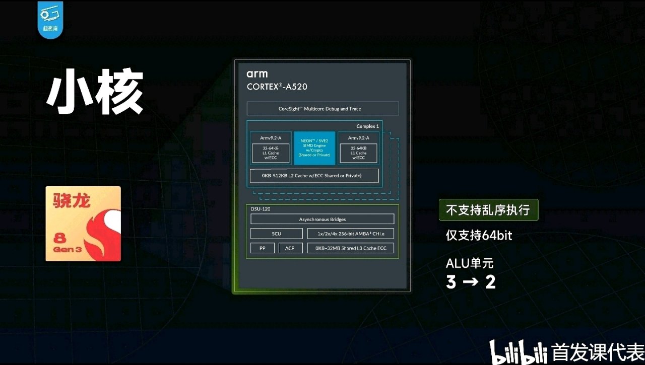 ❷FP浮点:Cortex-A520(1.36分/0.8瓦),性能提升约5.4%,功耗提升约14%;