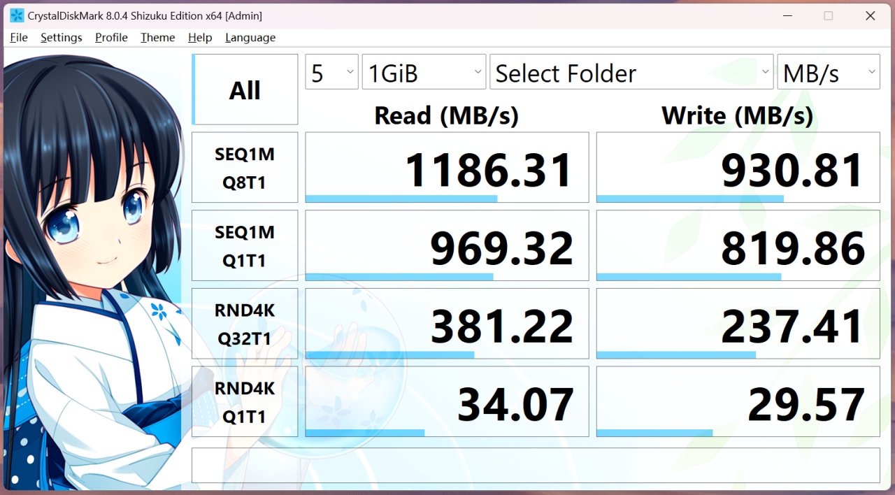 实际威联通TS-855X万兆读写下来,连续读取速度可以达到了1186MB/s,连续写入速度可以达到930MB/s。