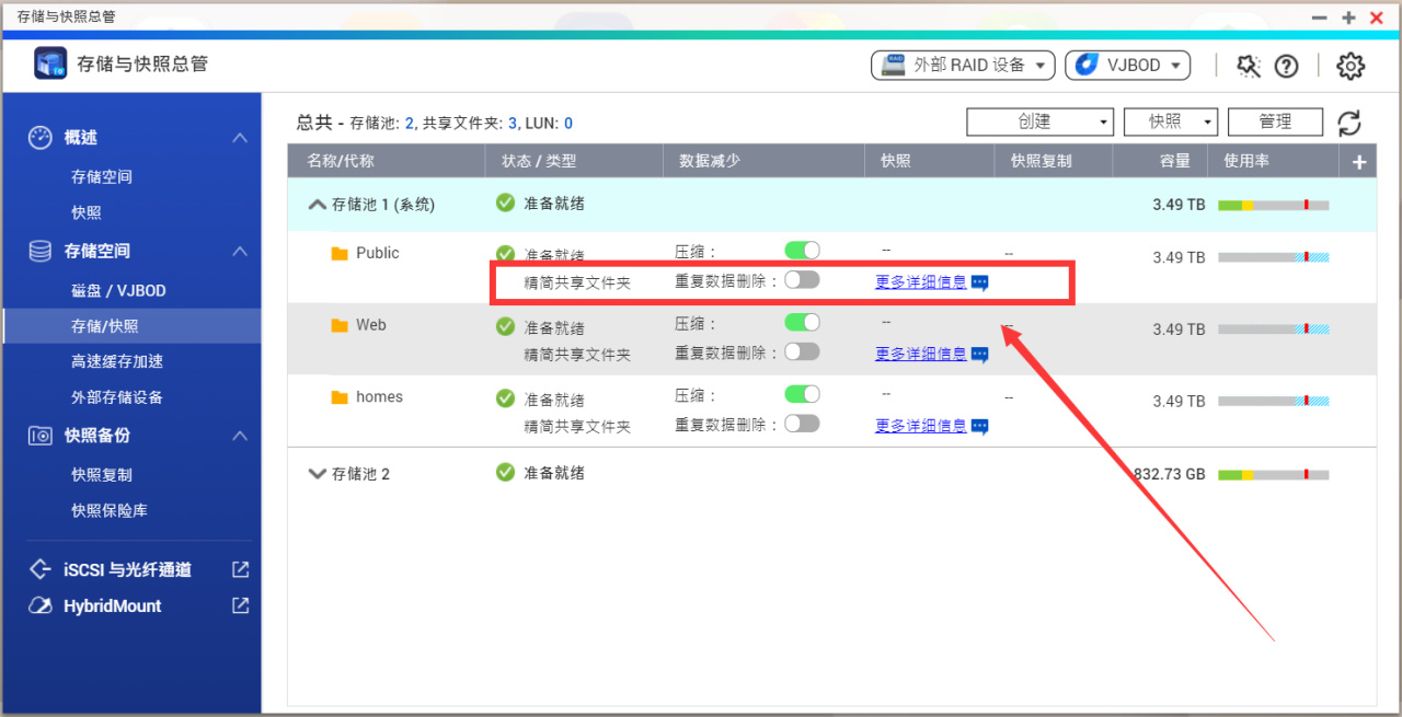 同样的,这个实时数据压缩可以直接在存储总管的文件夹后面启用。