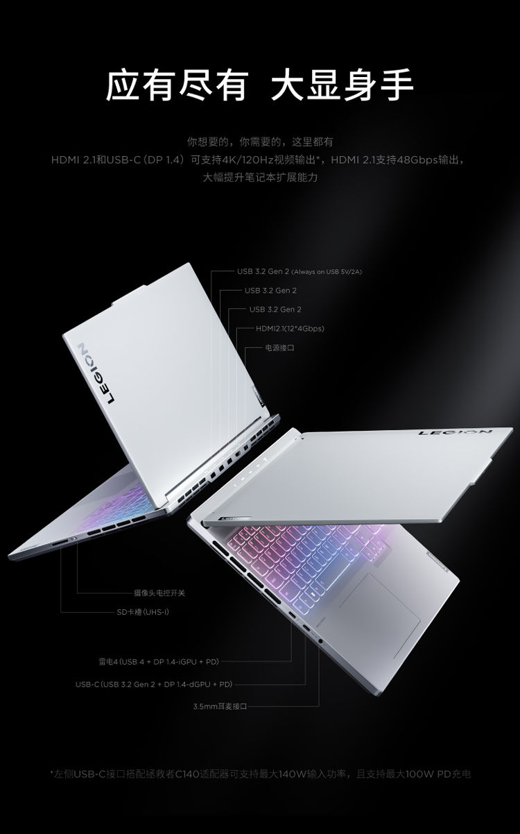 联想y9000x优势在于三个USB口为USB 3.2 Gen2,多一个雷电4口和SD卡槽
