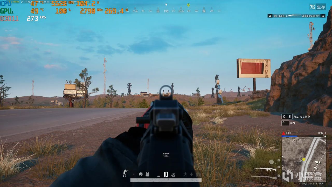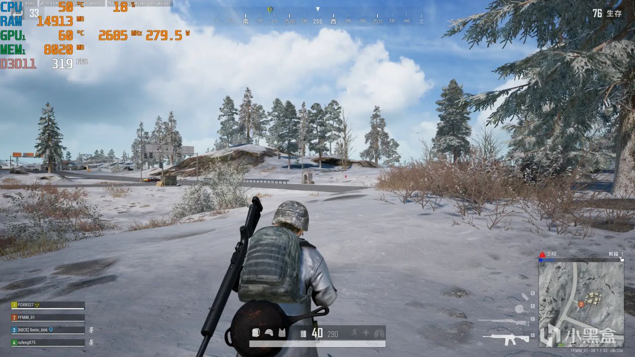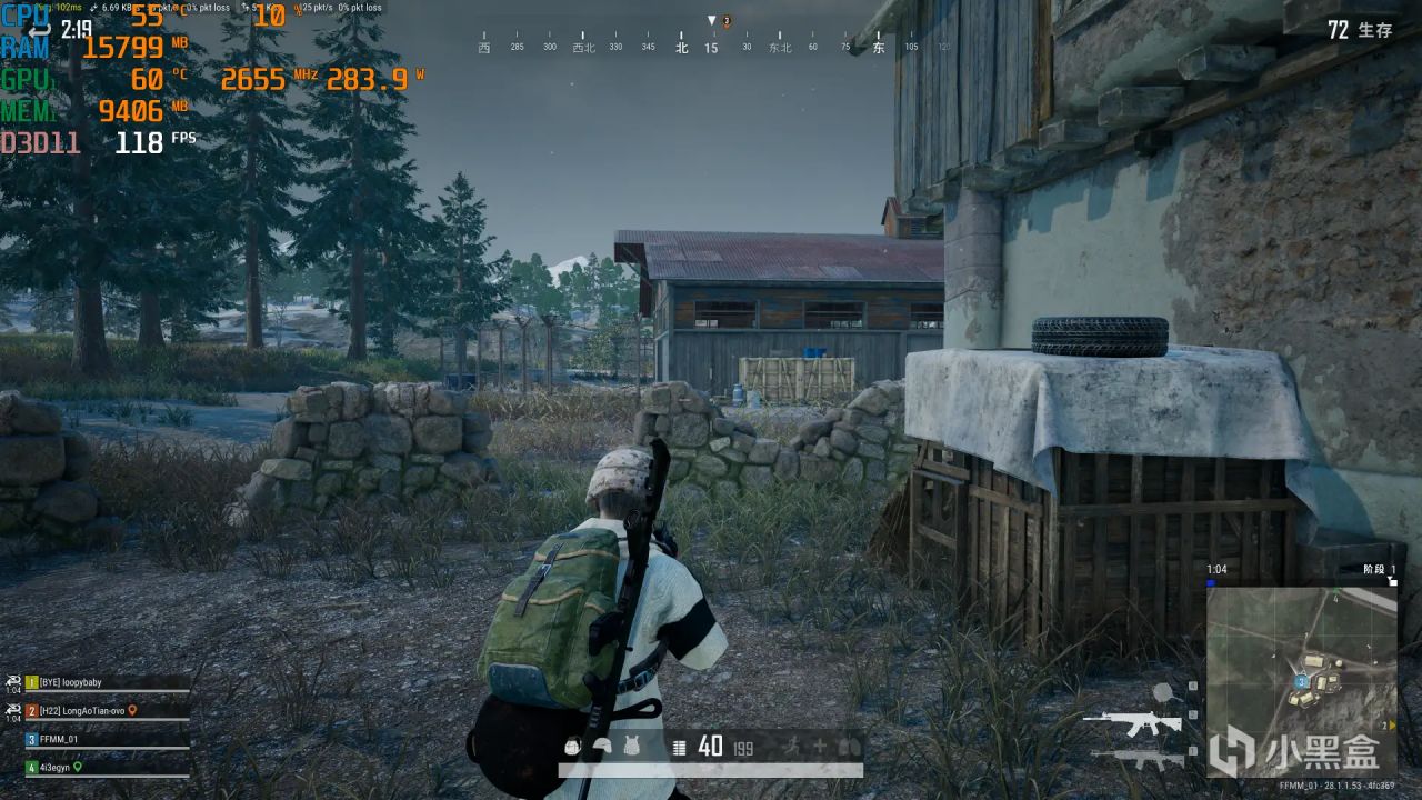 测试的游戏为《绝地求生》4K分辨率+100%渲染+极限画质: