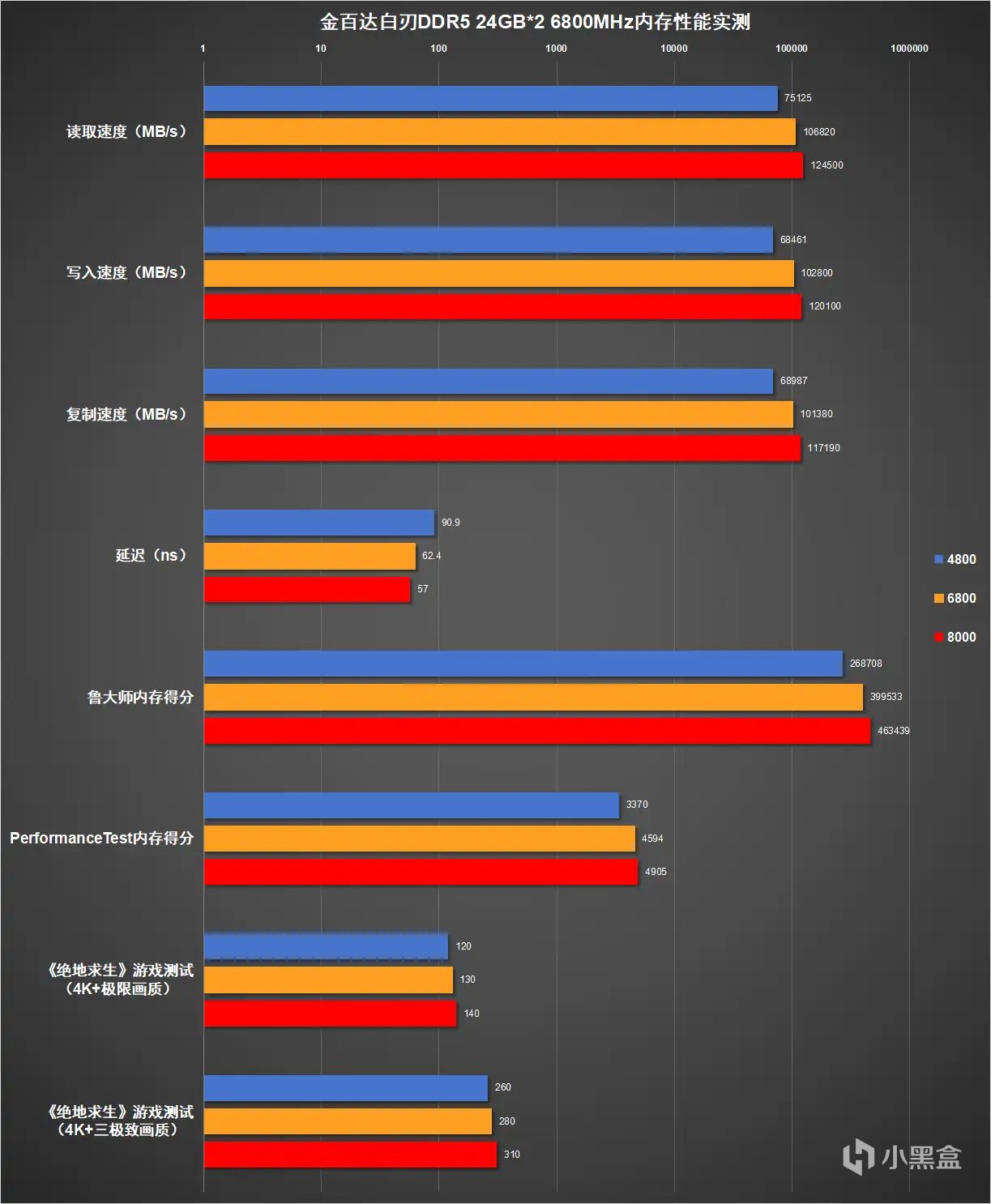 先说说性能,经过实测,金百达白刃DDR5 48GB(24GB*2)6800MHz的内存在性能方面要比普通的32GB套装性能更强,而且M-die颗粒也不是灰烬版,甚至具备不错的超频性能,只需要调试一番就可以进一步获得性能提升。