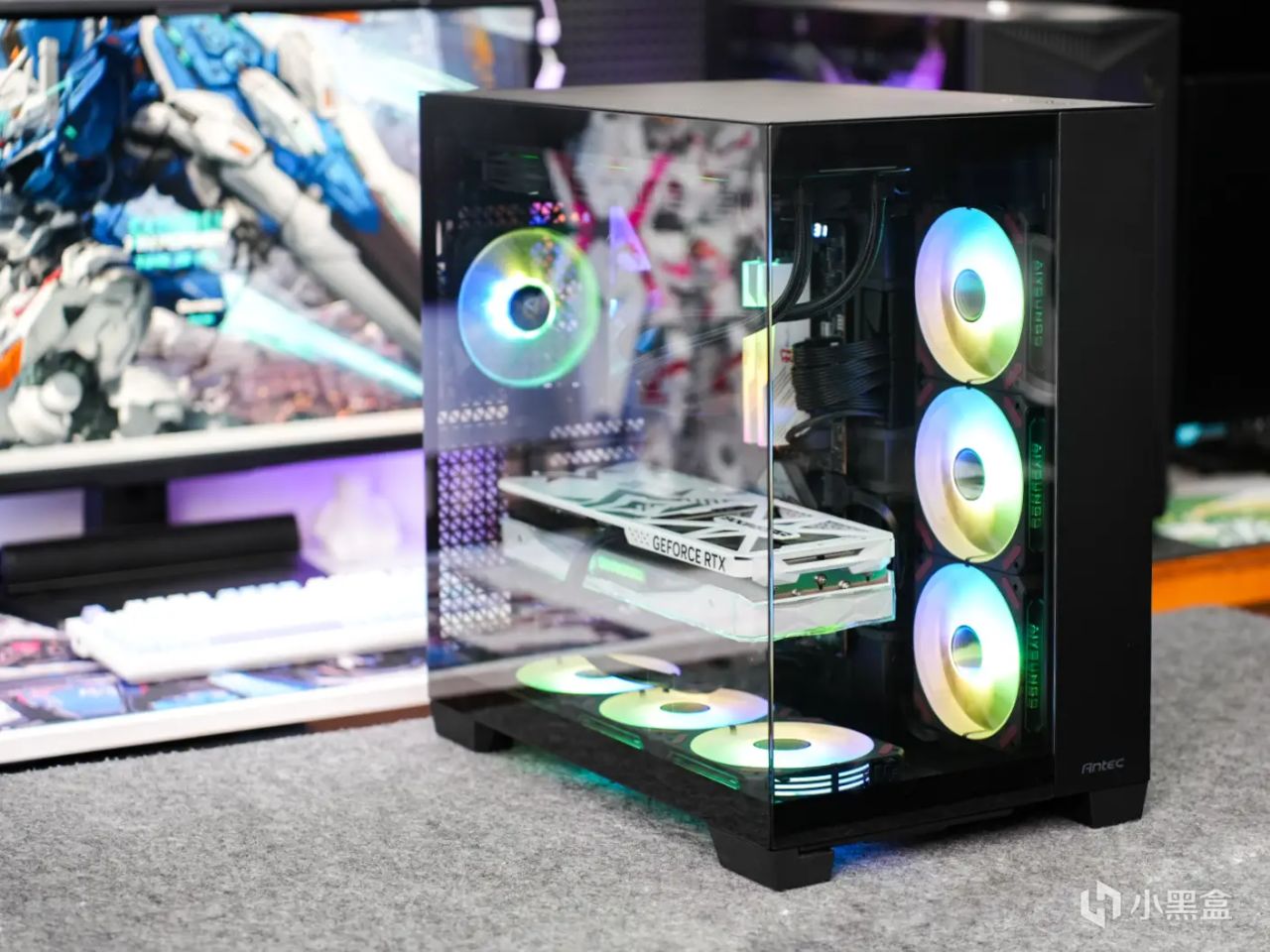 机箱我用的是安钛克C8,也是安钛克在去年发布的一款重磅新品,该机箱属于海景房机箱,最大的特点就是采用了双面4mm无钻钢化玻璃侧透设计,同时中间也没有设计立柱,可以带来270°的纯粹视觉体验。