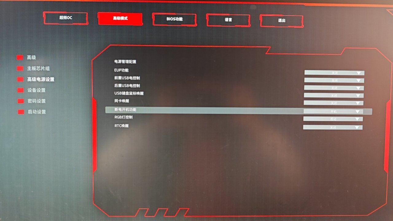 配置好之后我们需要在Bios上设置好来电启动这个功能,这样我们就可以运程对电脑进行开关机了