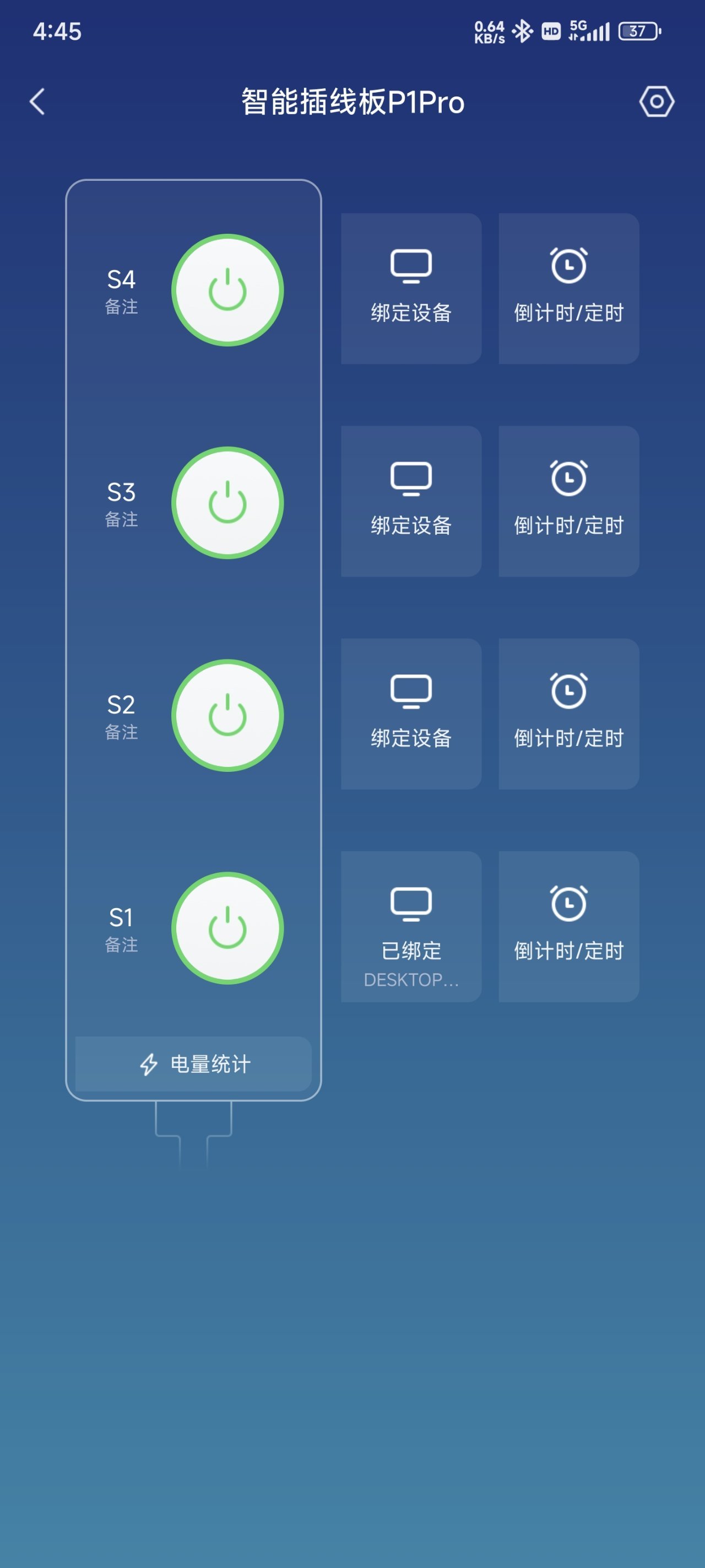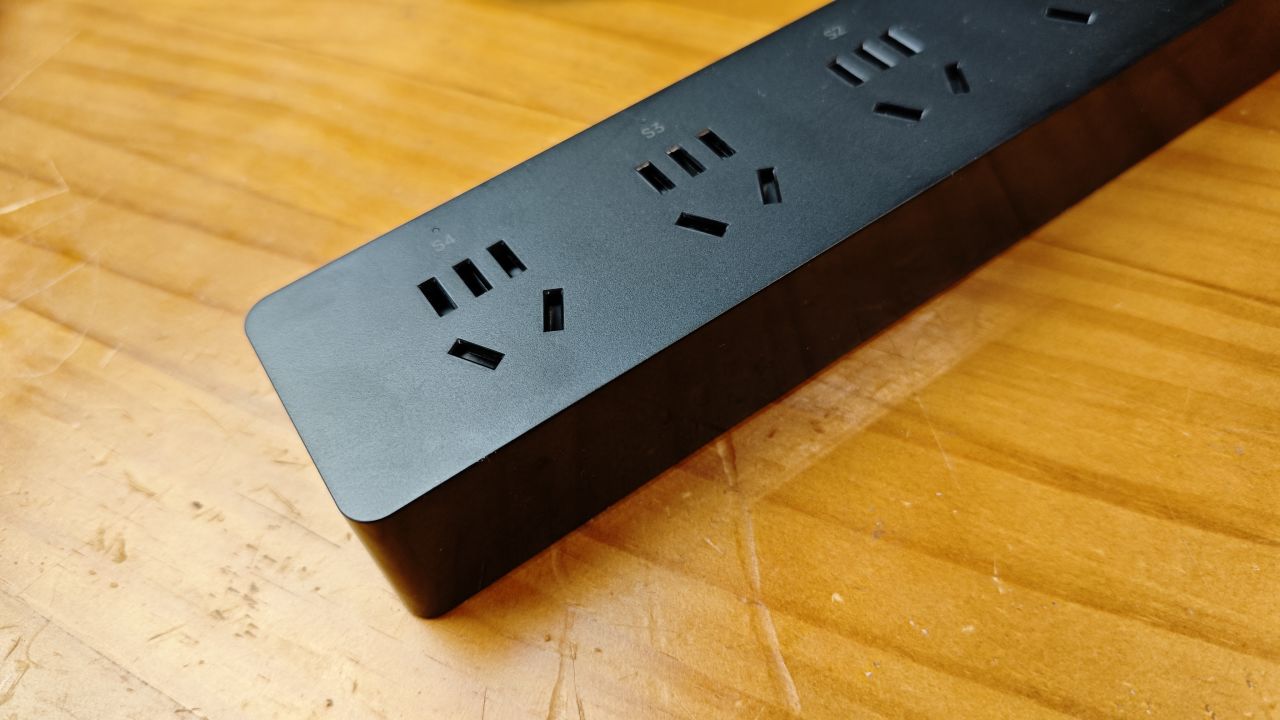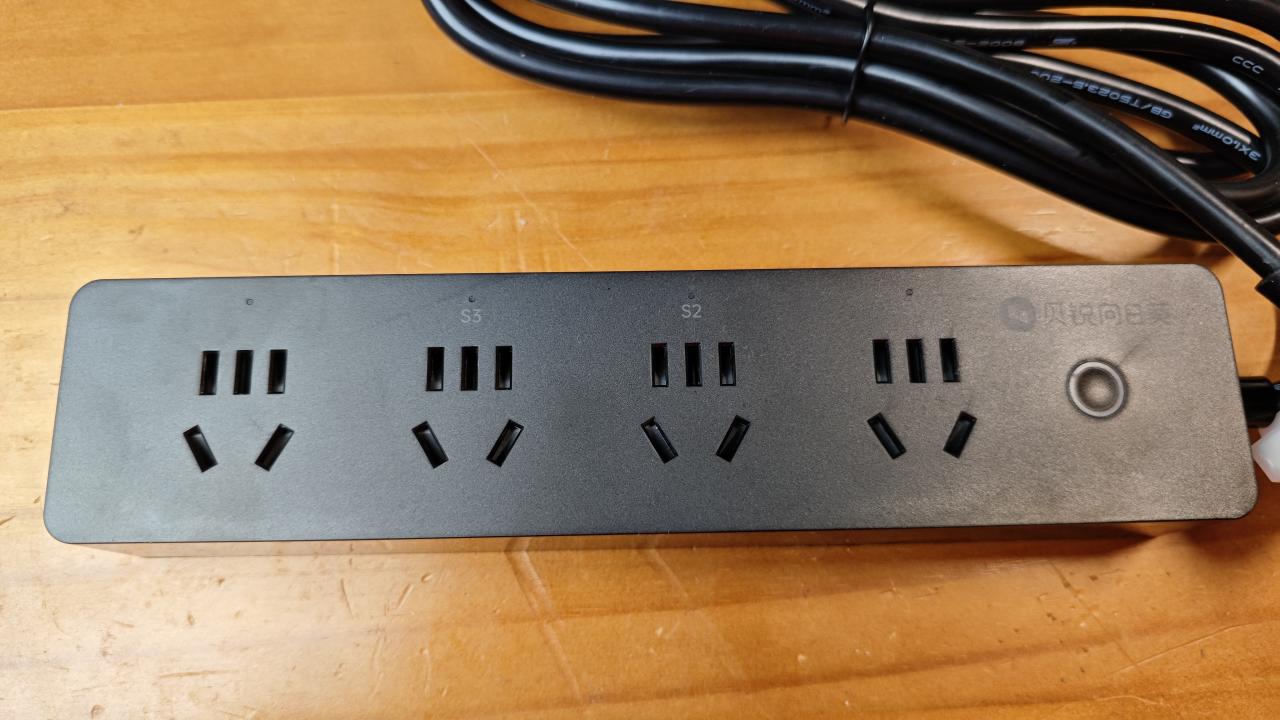 孔位只有4个孔位,采用了国标的五孔设计。孔位用S1~S4来进行标记,插线板上并没有充电开关,而且通过APP来控制开关。