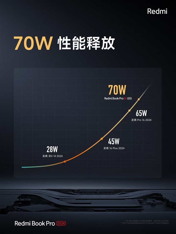 Intel Ultra处理器采用采用全新的3D封装模块化设计,为各个模块采用最合适的制程,实现更好的性能,以及更低的能耗。Redmi Book Pro 16 2024系列凭借优异的内部散热结构设计,使这颗核心的性能释放达到惊人的70W。
