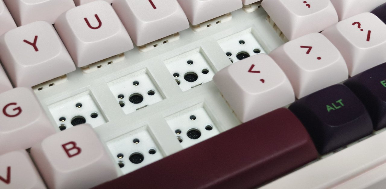 鍵盤的內部結構爲硅膠底墊+消音底棉+pet膜+ixpe軸下墊+poron夾心棉+pc定位板。整體的填充用料還是挺紮實的。並且它的PCB還做了單鍵開槽的處理,整體結構的軟彈程度也是得到了一個提升,手感極佳。