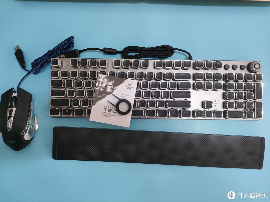 狼蛛(AULA)T500机械键盘鼠标套装 有线键鼠套装 游戏办公电脑键盘 蒸汽朋克 宏编程 带手托 黑色 青轴