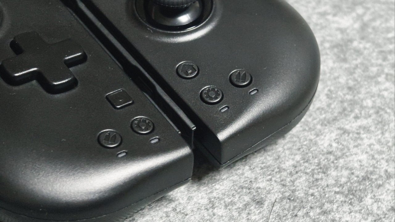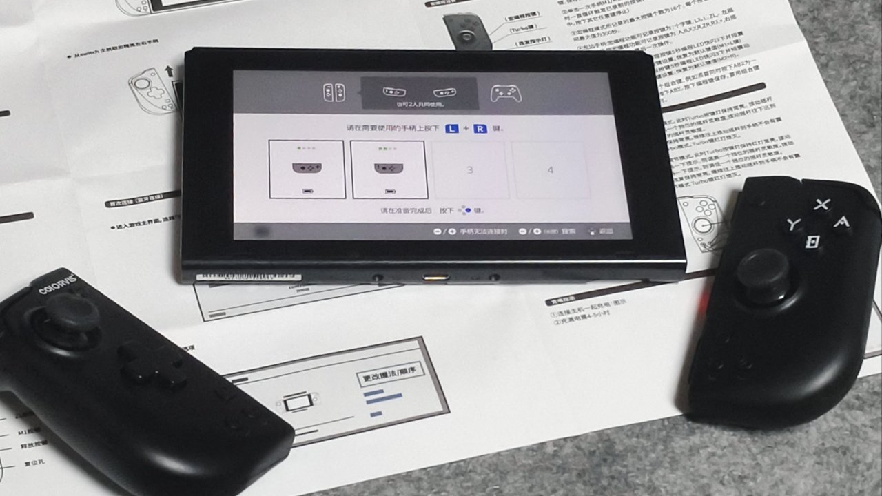在連接手柄方面,也是很輕鬆的不,用像其他廠商一樣專門整個配對鍵,它和正版的JOYCON一樣,按L+R或者SL+SR鍵就可以自行配對。