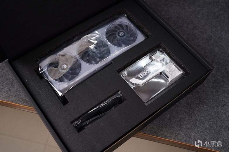 里头第一层附带有一个黑色信封(安装指南及质保卡),内填充了足量的黑色泡棉,包裹缓冲保护显卡及其附件,感觉可以少一些的,包装就不用做得这么大,但这样也会比较的有排面!