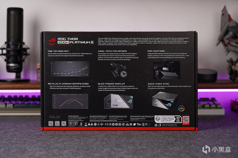 评测搭配电源选用的是华硕 ROG THOR 雷神二代 1200W 白金电源,包装延续 ROG 系列的设计风格,红黑配色搭配有电源本体展示。