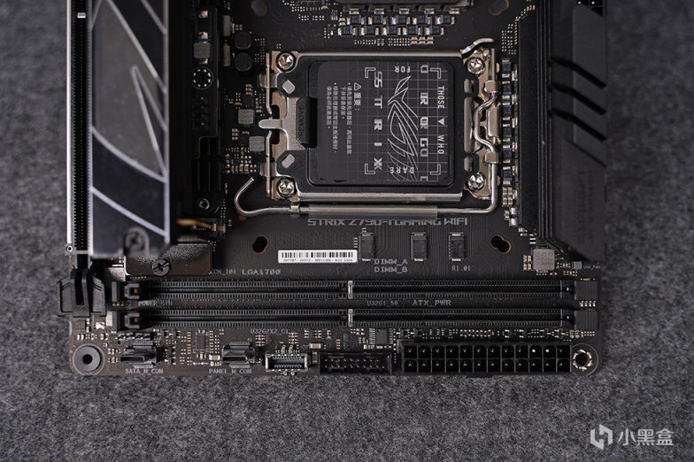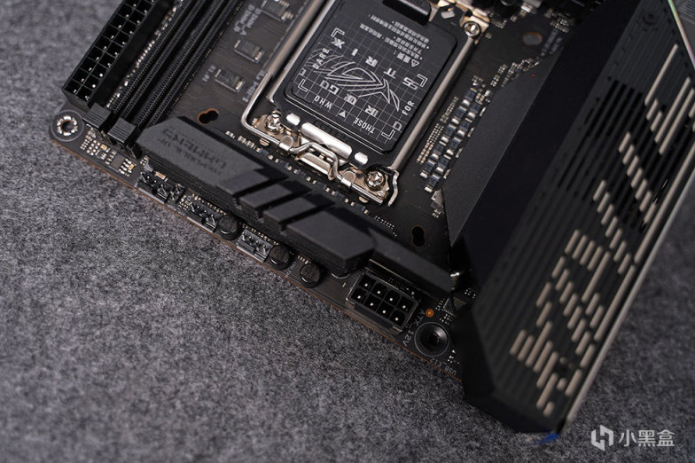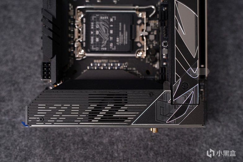 主板本体采用标准 MINI ITX 版型规格,黑灰的配色,外观个人感觉对比上代好看了不少,顶上大大的败家眼及 ROG STRIX 文字元素修饰,也还是叠叠乐的堆料拓展方式,具备很强的辨识度及威严感....