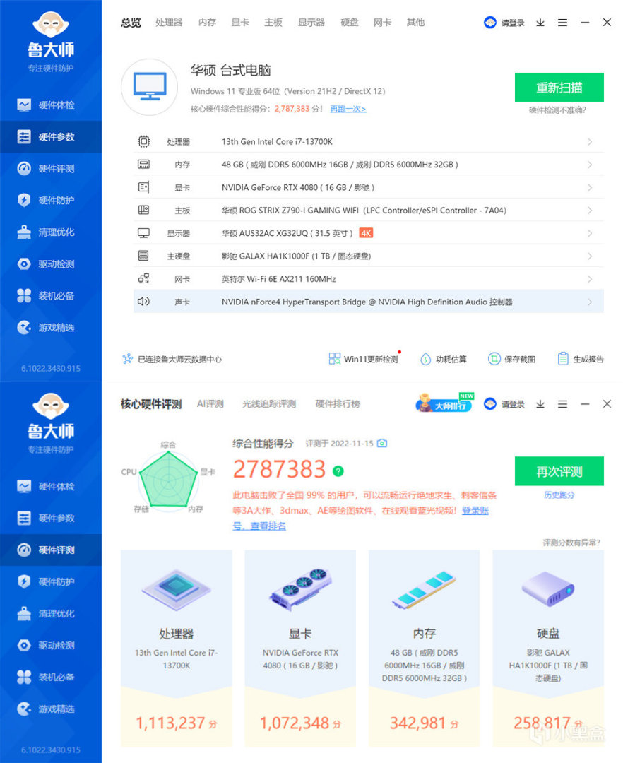 测试搭配华硕 ROG XG32UQ 绝神 32 FAST IPS 电竞显示器,4K 电竞显示器基本算得上是这代 40 系显卡的标配吧,RTX 4080 虽不比 RTX 4090 轻松拿捏,但也足以应对绝大部分游戏的使用需求了。