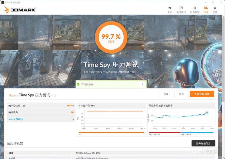 显卡 TIME SPY 压力测试 99.7% 通过。