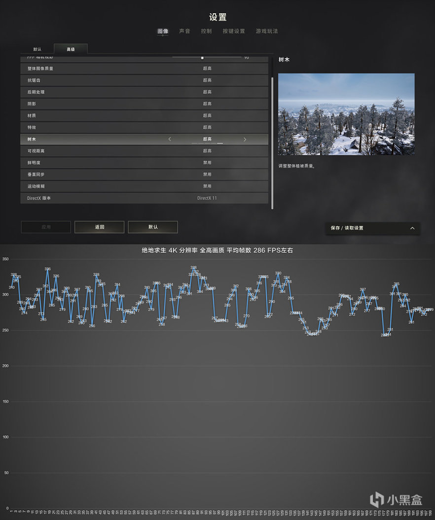 老掉牙的绝地求生也来凑凑热闹,4K 分辨率,极高画质,平均 286FPS 左右,再手头就没有什么游戏可跑了,测试就这样了。