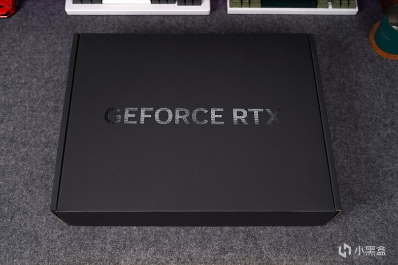 常规包装打开方式,内外盒!内盒纯黑样式,正面印刷有 GEFORCE RTX 的字样标注。