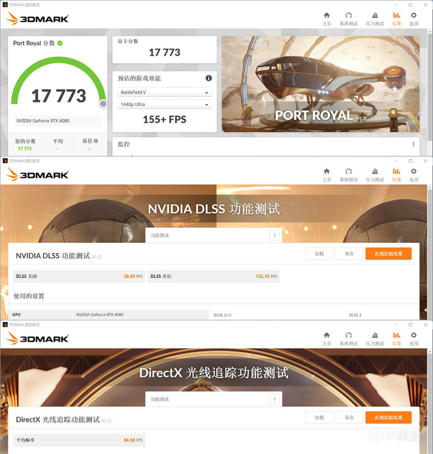 赛博朋克 2077,4K 分辨率,BENCH 测试,超级光追,自动 DLSS ,平均 84.37 FPS ,实际游戏基本符合测试结果。
