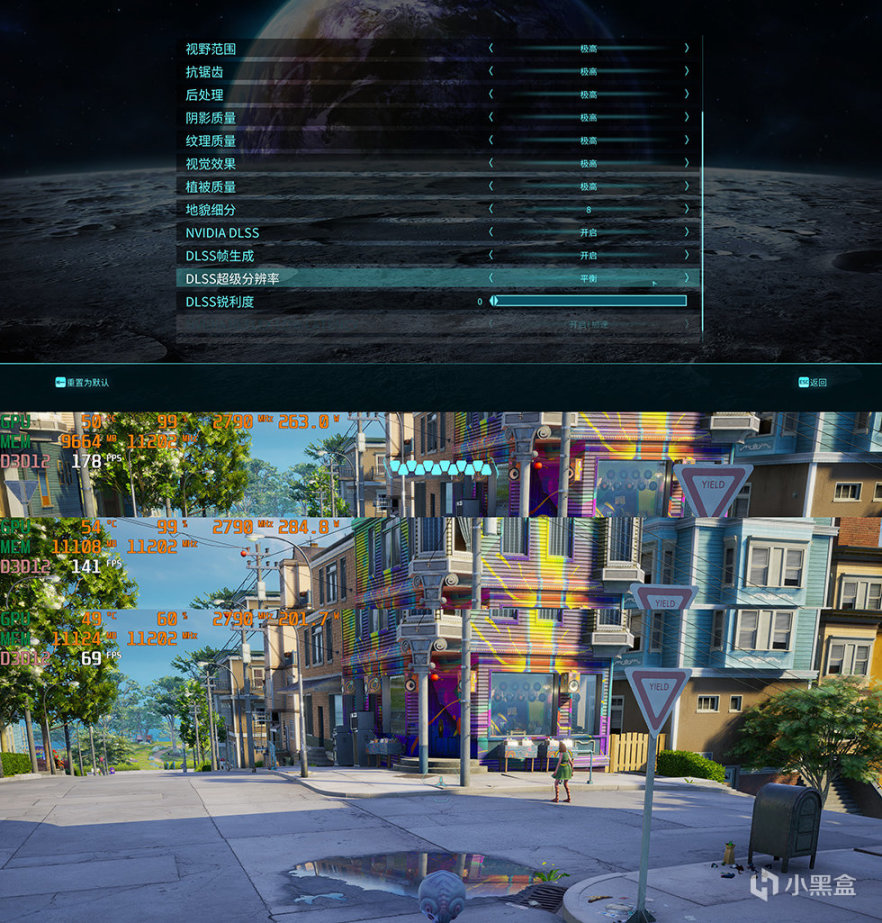 Destroy all Humans 2,,画质均拉到最高选项,4K分辨率,统一的场景下,开启 DLSS 3 帧生成 178FPS,常规 DLSS 141FPS ,无 DLSS 69FPS。
