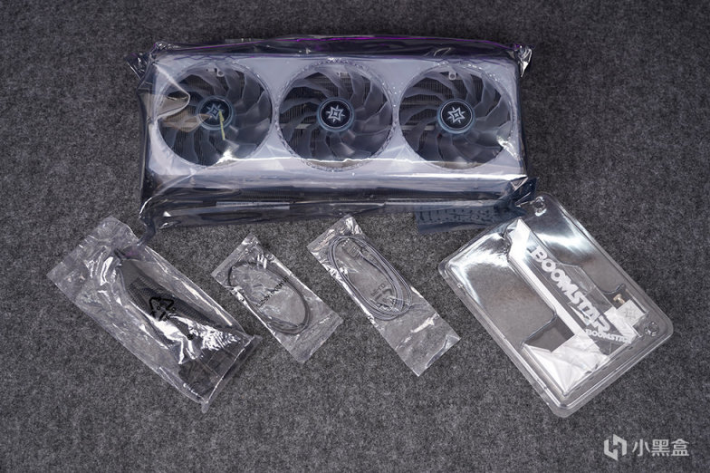 里头所有的东西,显卡本体、一条又粗又壮的 16PIN 转 3 × 8PIN 供电线、两条 ARGB 延长线、另附附带了一个星曜主题设计的 ARGB 显卡支架。