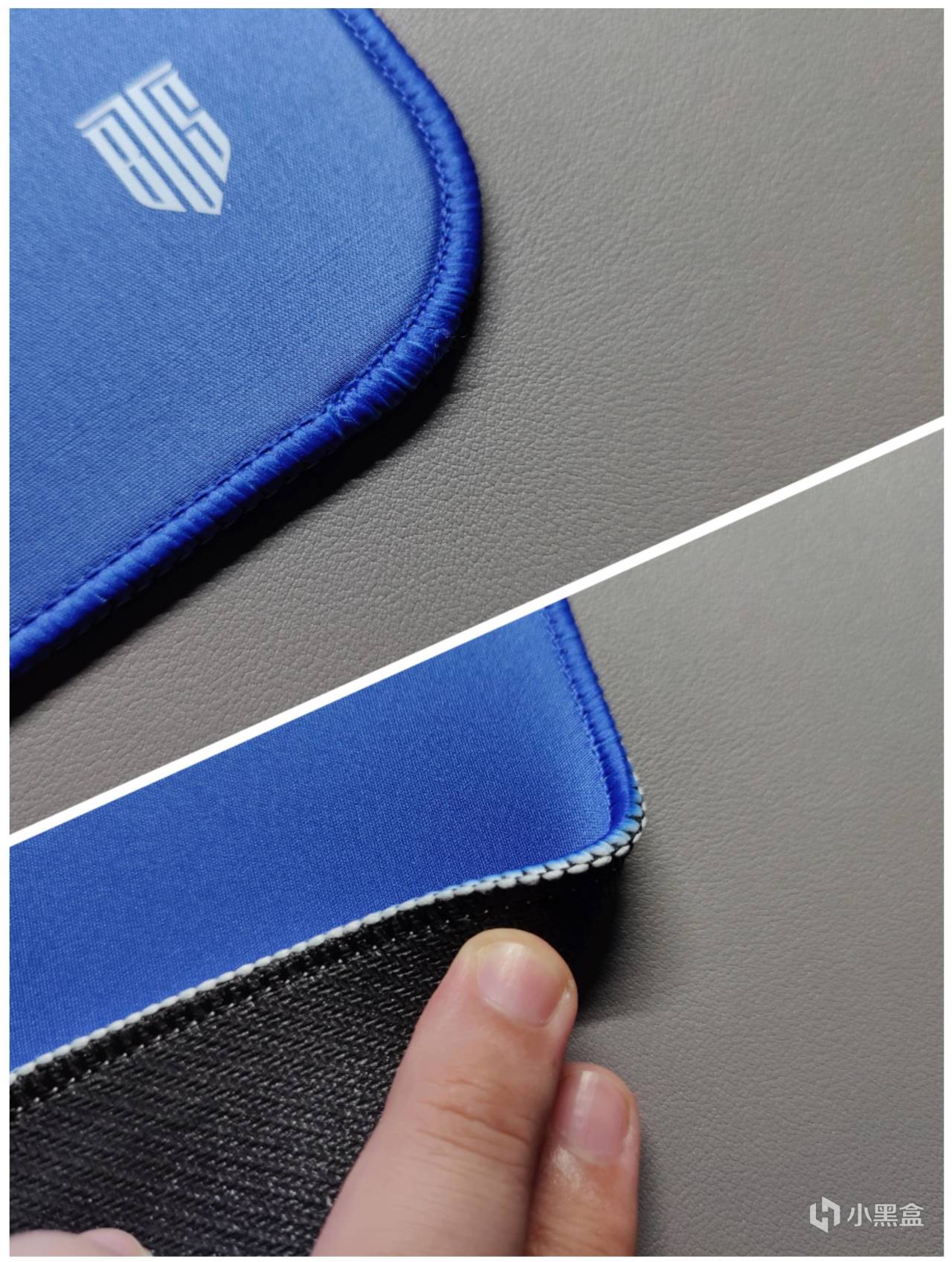 鼠標墊的表面厚度爲4mm,包邊也是略低於表面高度,使用起來不會出現割手腕與鼠標翹頭的情況,封口的位置在鼠標墊右下角的LOGO下方,封口處也沒有任何的凸起與飛邊,整體的包邊做工表現出色。
