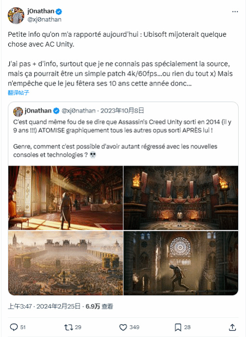 據油管主j0nathan爆料,育碧似乎有計劃推出《刺客信條大革命》的復刻版。可能會將分辨率提升至4K,或者是在主機平臺解鎖60幀。不過他了解的信息也不多,來源也無法確定。j0nathan曾爆料過多款《刺客信條》遊戲的消息,雖然不是準確率百分百,但仍有一定的可信度。