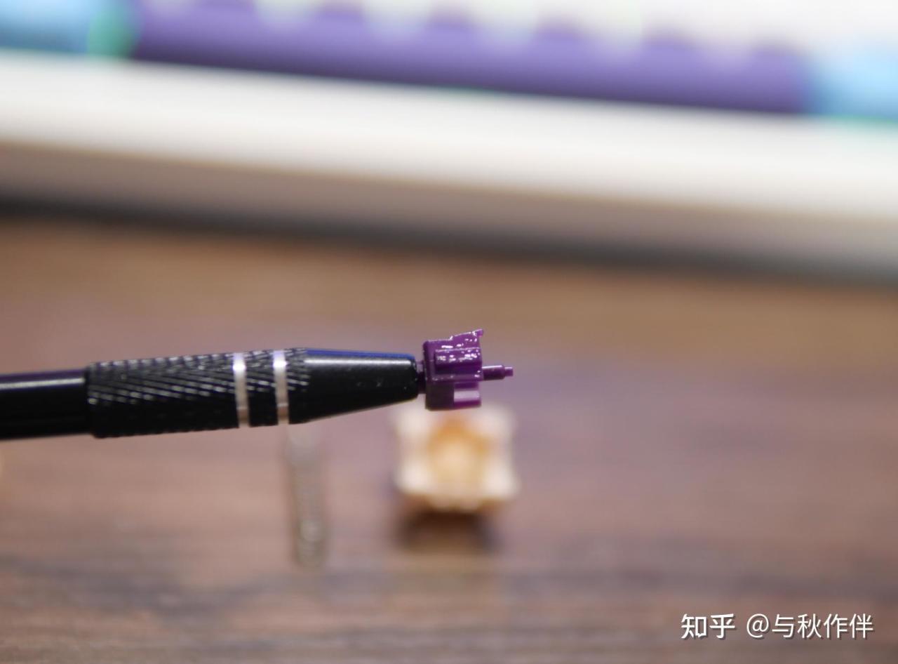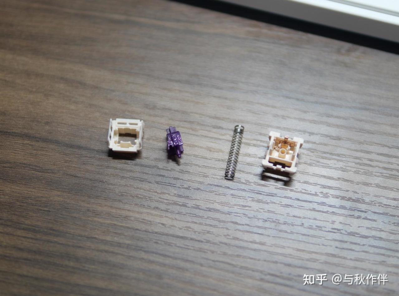 我手上的這款搭載的是九紫的風雨軸,奶色上下蓋,深紫色軸心,軸心穩定性一般,順滑度很不錯,拆開看到有比較充分的出廠潤滑存在,總體來說在這個價位上屬於高於水平線以上的一款軸了。