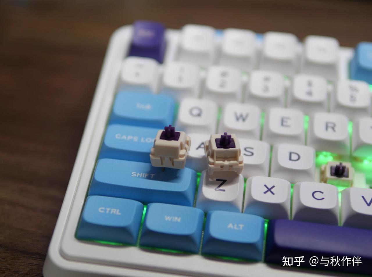 這款lite版是K75這麼多版本里第一次用上了球帽,這個款MDA高度的二色PBT球帽看起來很眼熟,和珂芝Z98潮玩版上的是一樣的,甚至配色都是完全相同。