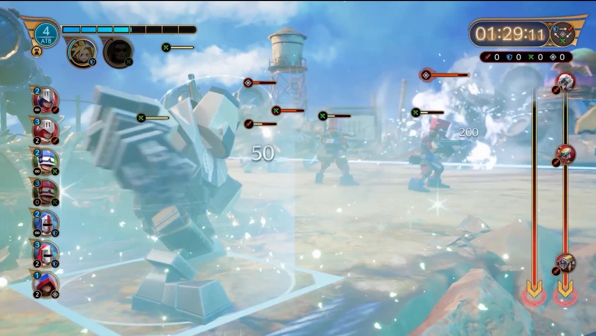 除此之外,角色兩兩之間還有加入了非常多的聯手動作和聯手能力,前者爲不消耗ATB的即時操作,具有各式各樣的性能,例如向敵人突進或是自己滯空,又或是將隊友召回身邊護駕,還能免費施放強力攻擊,這會成爲ATB真空期或是處理BOSS招式的重點。後者則是需要通過消耗ATB累積量表發動的能力,造成傷害的同時還能爲玩家提供多種增益BUFF。