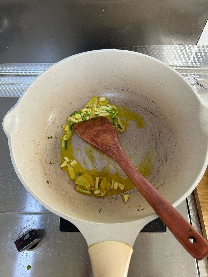 1.虾洗干净,开背去虾线,葱姜蒜切末,起锅烧油,加入葱姜蒜爆香