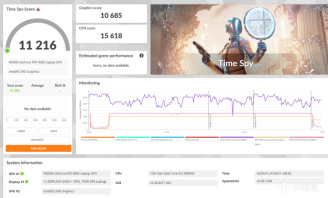 從3dmark跑分來看,顯卡方面,雖然4060距離桌面級3080ti還是有一定差距,但強大的CPU以及優秀的硬件調教以及40系新顯卡的獨家優化使得遊戲體驗不輸筆者的臺式機,它的定位依然是網遊遊戲本。