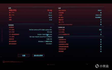 運行了遊戲自帶的基準測試,平均幀數達到了80幀左右,在光追開啓的情況下4060的表現居然還能如此亮眼,絕對達到了暢玩的地步。
