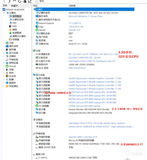 ROG魔霸2024使用的是西部數據的WD PC SN560 SDDPNQE-1T00-1002,支持PCIE4.0。