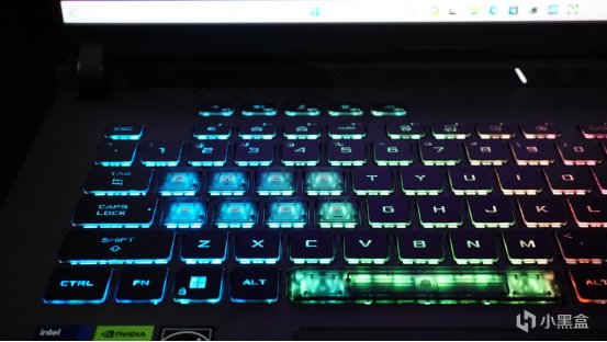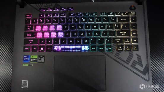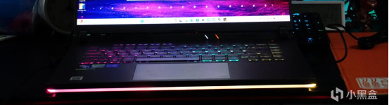 燈光的調教方面,ROG作爲頭部大廠依舊爲我們帶來了美輪美奐的表現。有人覺得光污染,但是筆者自己還挺喜歡RGB,彷彿置身於賽博朋克的世界一般。作爲賣點之一的半透明鍵盤給了筆者很大的驚喜,9個鍵位一看就是爲遊戲玩家量身定製,dddd。