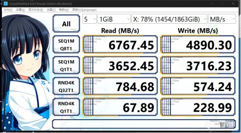 筆者通過(DiskMark) 1GB讀寫測試如下: