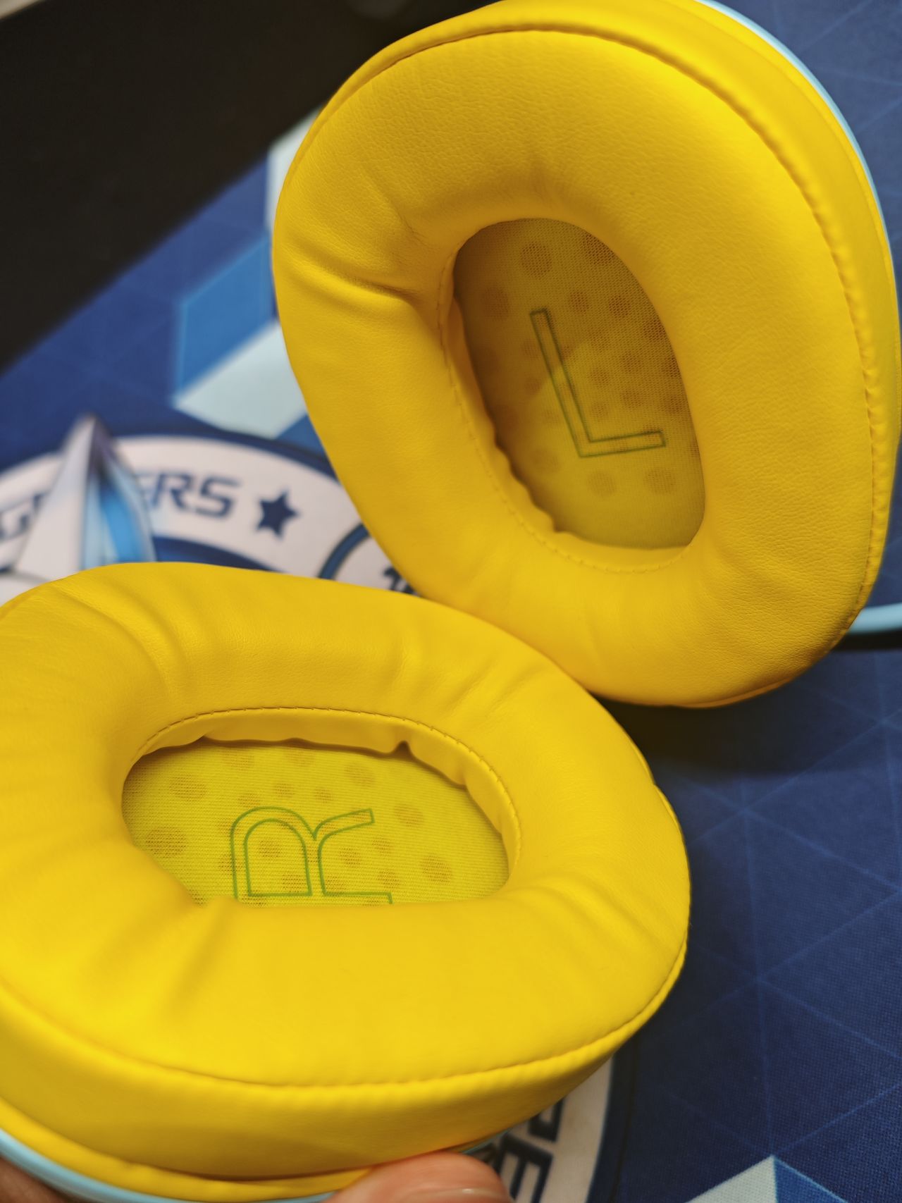 耳套是蛋白皮材質,柔軟戴起來舒適親膚,透氣不壓耳、不夾耳。裏面的“R”對應右耳,“L”對應左耳。耳機內部採用50mm動圈式單元,高音通透、低音澎湃,進一步提高聲音質量,帶來身臨其境的遊戲體驗。