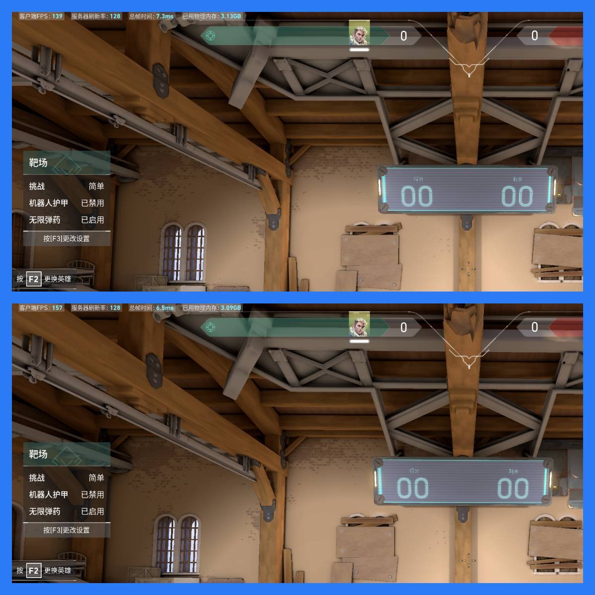 ●调试前游戏帧数在130-160FPS中间 / 调试后游戏帧数在130-180FPS中间