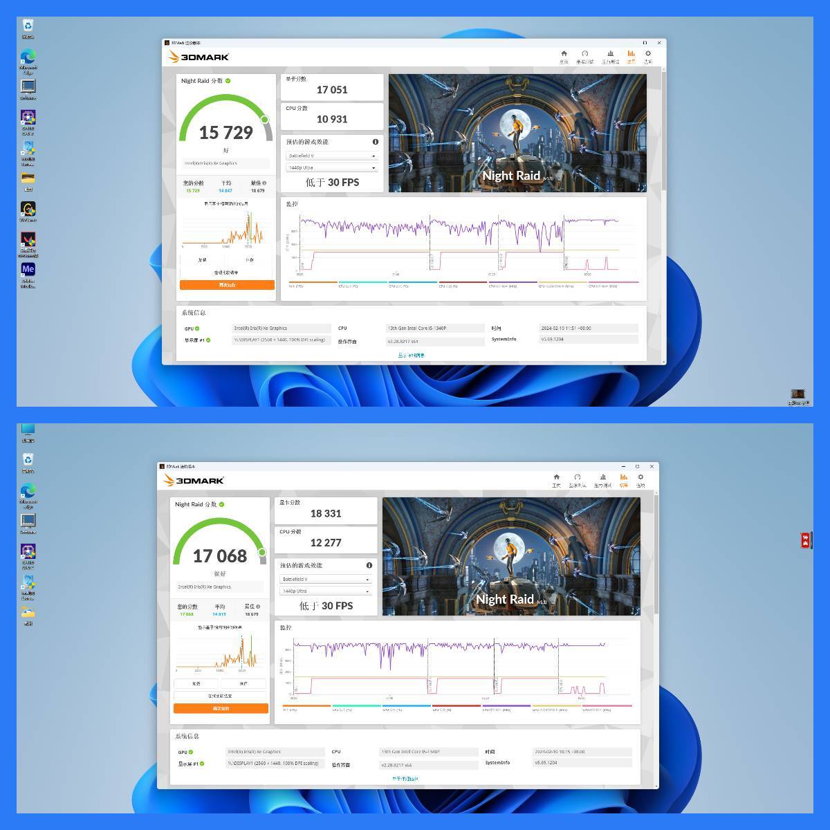 ●调试前物理分数为10931 / 调试后物理分数为12277