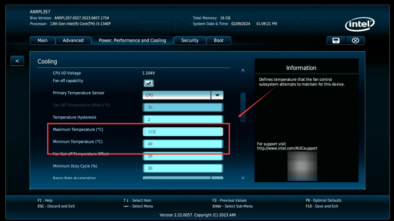 ●第一步,将最大运行温度修改为105°。