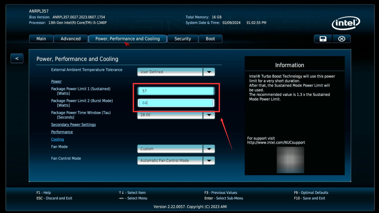 下面开始调试教程,下面修改是无风险的,照抄即可,可以点击Power,Performance and Cooling页面修改功耗墙。