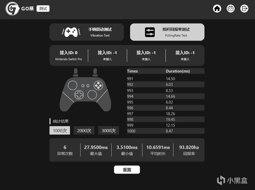 最後則是回報率的部分了,在有線模式下,其可以跑到1000hz的回報率,這點還是不錯的,當然這部分是指在Xinput模式下,且更新了最新驅動之後纔可以做到的,而在NS模式下的有線以及藍牙模式,都在一個100hz的表現,對於NS遊戲來說倒也是足夠了,至於2.4g模式,因爲手上沒有接收器,所以就很抱歉了~