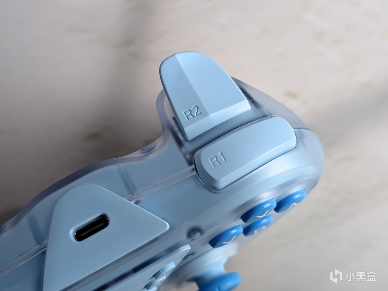 扳機鍵方面就沒有采用比較熟悉的霍爾扳機了,而是採用的普通線性扳機,不過考慮到價格,這方面到是也可以接受了,手感方面還算不錯,回彈性比較適中,不會頂手但也不會軟趴趴的,玩着比較舒服。