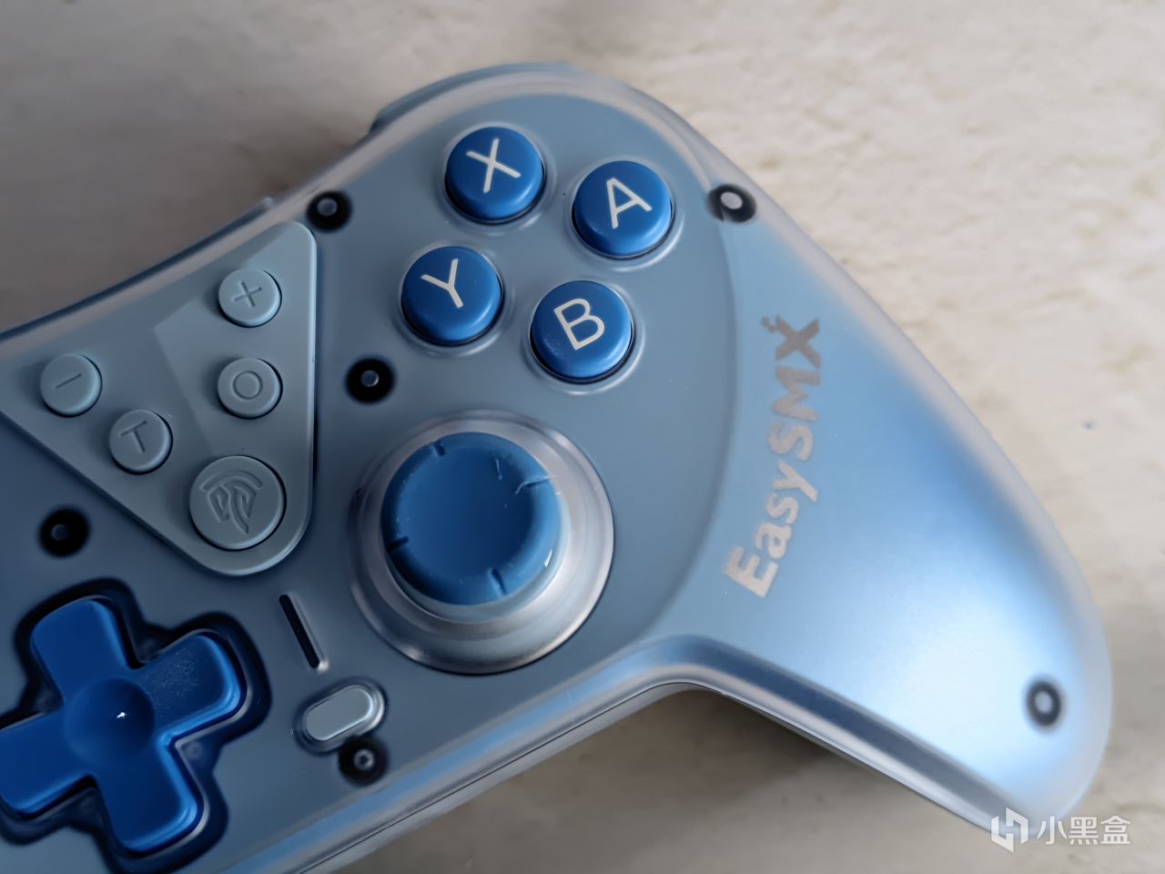 ABXY方面採用的也是導電膠設計,並且比較有趣的是,通過底部的按鍵可以做到十字鎖的功能,使得十字鍵只存在上下左右四個方向,避免在遊戲中出現誤觸,這點還是比較有用的,而在右下角則是帶有其本身的LOGO圖案,算是整個正面唯一的裝飾紋樣了,但好在不算突兀。