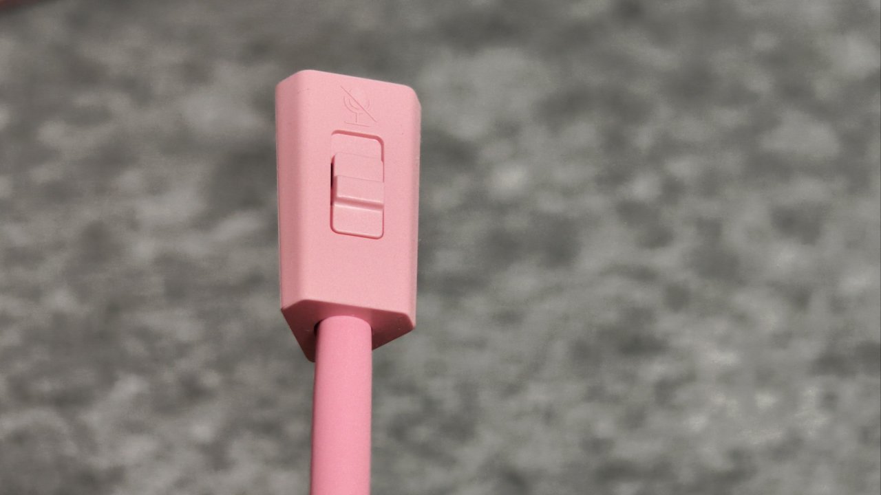 说到麦克风,你可以看到它的顶部是有个按键的,如果你不想讲话,可以按下这个按键,就能一键闭麦。值得一提的是,他这个麦克风是带有通话降噪的,所以你不用担心你音响放出来的声音或者房间里的回音给接收进去,并且因为线材较软,你也可以对其的角度和长度进行一个调节。