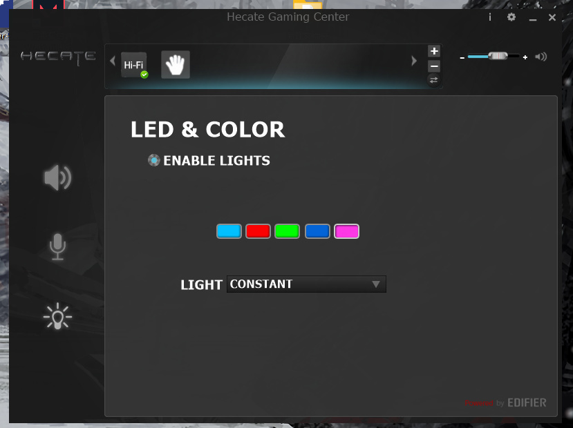 点击灯泡,则是可以调节音箱的灯光颜色以及各种灯光灯效,但是这个功能按键方面其实已经有了,只能说是锦上添花吧,想不想用看个人喽
