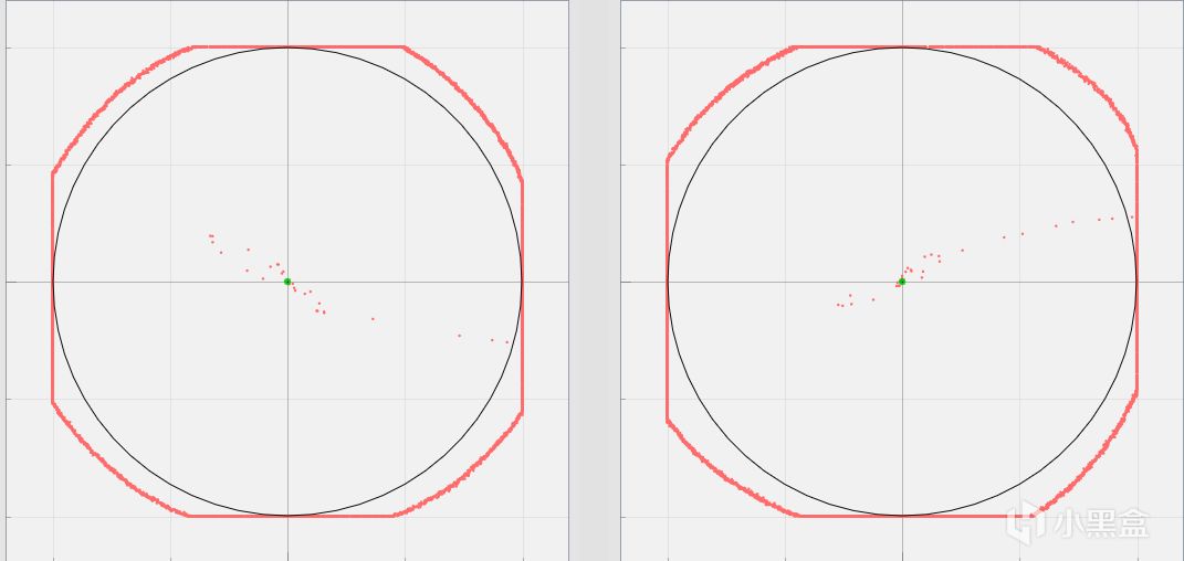 摇杆整体的画圆表现非常不错,采用的是圆角矩形的画圆策略,可以保证摇杆在四个斜角的时候也能提供充足的距离。同时在死区方面,战龙手柄也保持着优异的水平,并没有带有中心死区以及十字吸附,整体的手感会非常流畅。
