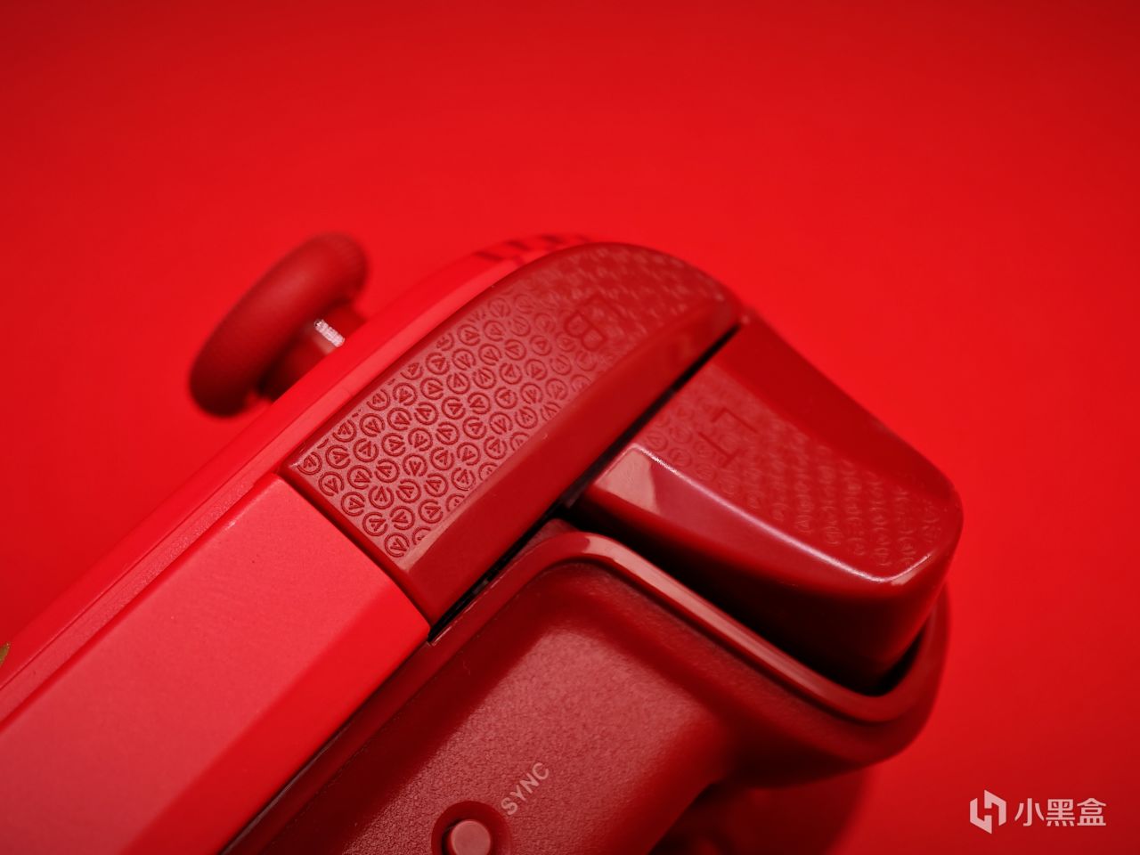除此之外就是旁边的四颗背键,比较有趣的是在按键上方也印上了和扳机/背键/握把处同款的防滑纹,可以防止手滑,这点很值得好评。