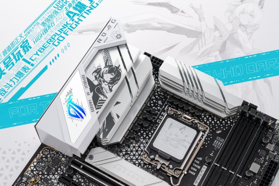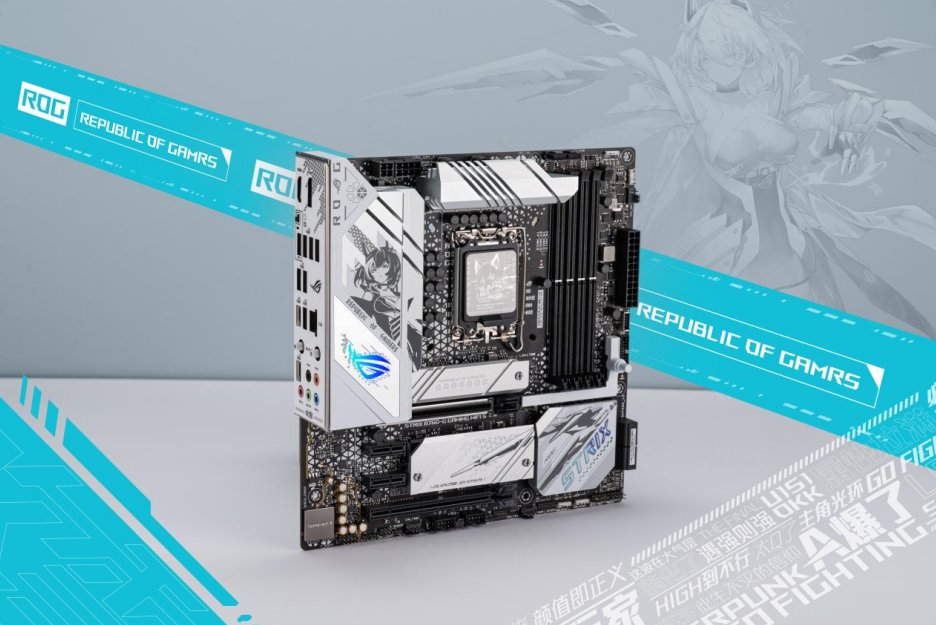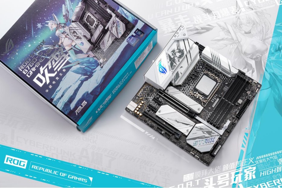 ROG B760小吹雪S是吹雪系列的第二款mATX板型的主板,其沿用了標誌性的銀白二次元設計風格。主板上的銀白色散熱片造型與前作基本相同,不過上面的裝飾元素經過了重新的設計:供電模塊散熱裝甲上,印有碩大的雪武戰姬形象,就連主板背面也有其圖案,配以ROG LOGO燈、電競潮流圖案和雪花等元素,讓整個主板更具二次元風格,更符合年輕羣體的審美。