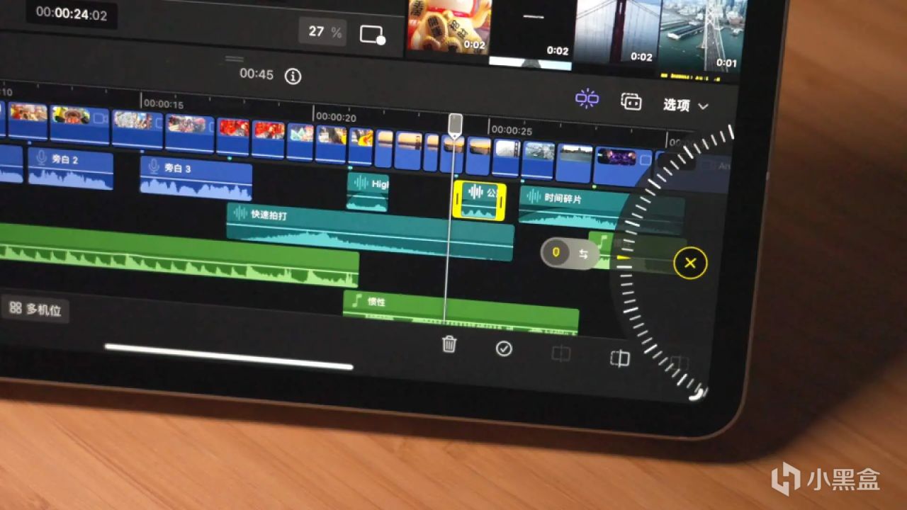 导出的时间对比电脑端差别不大,证明苹果并没有很“偏心”。对比剪映iPad 端,以上两款软件可以加更多轨道还更丝滑,还多了音频编辑、混音、空间感的调控,最后是高分辨率的导出,可惜的就是不能有电脑的那么多的三方插件安装···FCPX的插件真的比PR、AE之类的好用太多了。